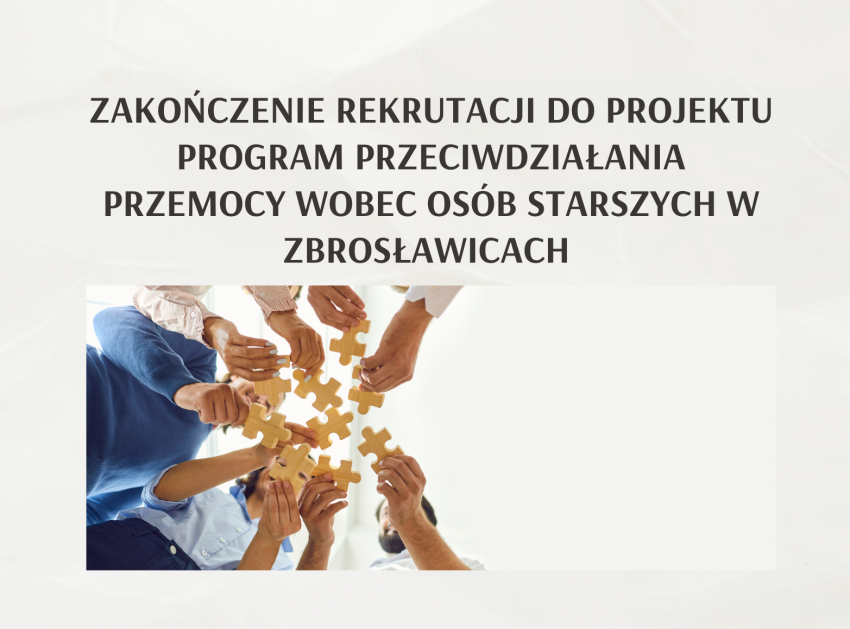 Zakończyliśmy rekrutację do projektu „Program przeciwdziałania przemocy wobec osób starszych w Zbrosławicach” Rekrutacja rozpoczęła się od spotkań z osobami uczęszczającymi do klubów seniora. W każdym z klubów seniora, podczas spotkania przedstawiono założenia projektu, czas trwania projektu, a także stopień zaangażowania uczestników w związku z możliwym ich udziałem w projekcie. Przedstawiono również korzyści, jakie uzyskają w…